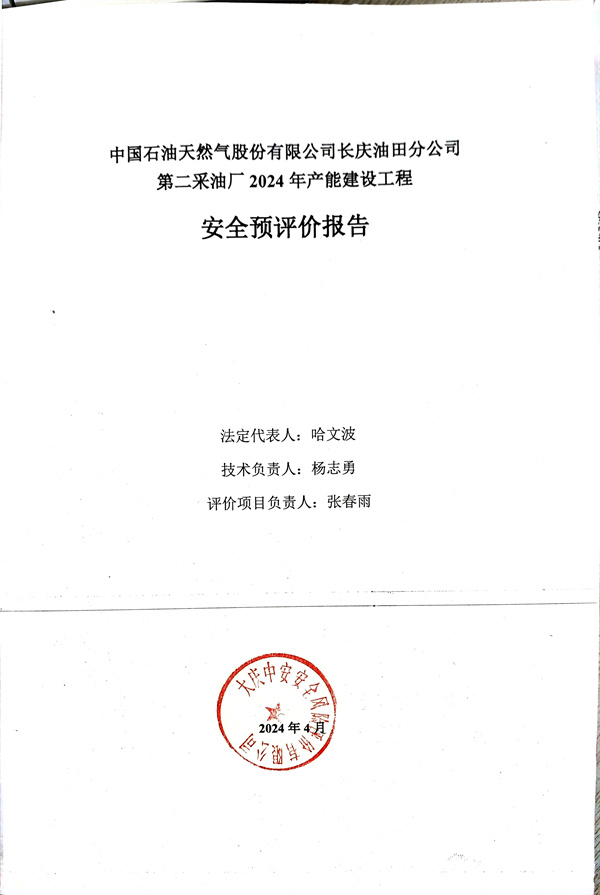 中國(guó)石油天然氣股份有限公司長(zhǎng)慶油田分公司第二采油廠2024年產(chǎn)能建設(shè)工程安全預(yù)評(píng)價(jià) |