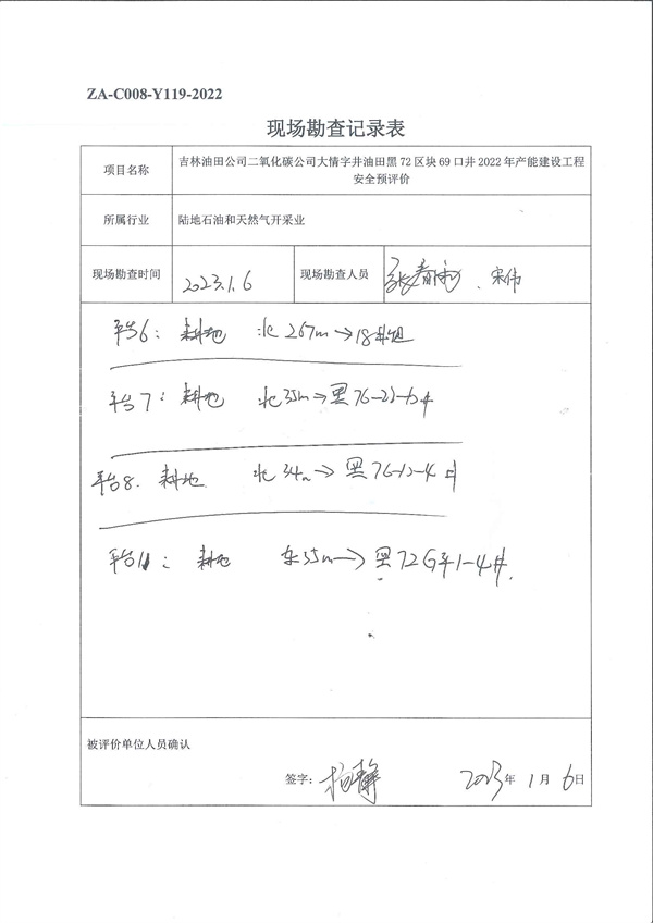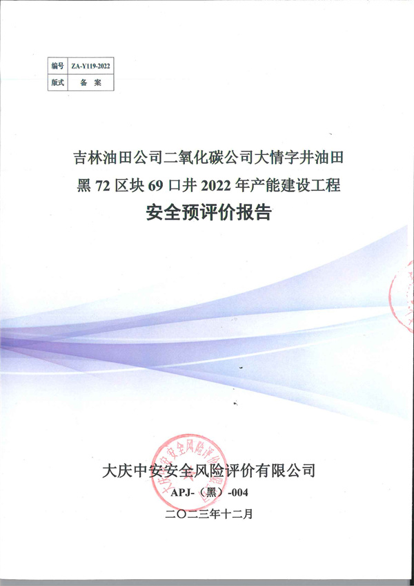 吉林油田二氧化碳開發(fā)公司大情字井油田黑72區(qū)塊69口井2022年產(chǎn)能建設(shè)工程安全預(yù)評價報(bào)告 |