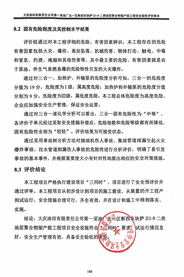 大慶油田有限責(zé)任公司第一采油廠北一區(qū)斷西東塊薩II1-9二類油層聚合物驅(qū)產(chǎn)能工程安全驗(yàn)收評(píng)價(jià)報(bào)告
