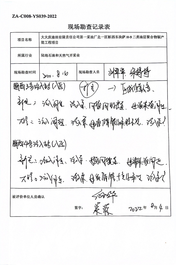 大慶油田有限責(zé)任公司第一采油廠北一區(qū)斷西東塊薩II1-9二類油層聚合物驅(qū)產(chǎn)能工程安全驗(yàn)收評(píng)價(jià) |