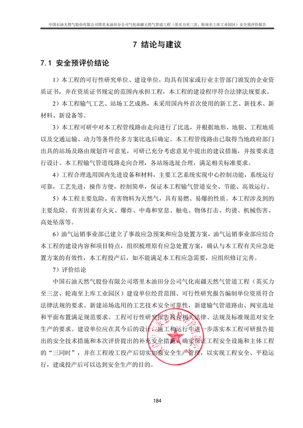中國石油天然氣股份有限公司塔里木油田分公司氣化南疆天然氣管道工程(英買力至三岔、輪南至上庫工業(yè)園區(qū))安全預(yù)評價報告 |