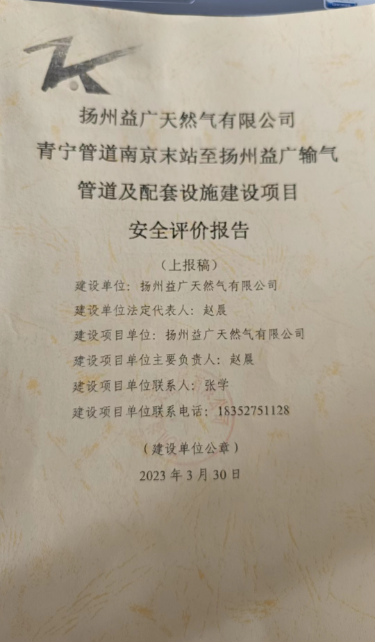 青寧管道南京末站至揚(yáng)州益廣輸氣管道及配套設(shè)施建設(shè)項(xiàng)目安全評(píng)價(jià)報(bào)告