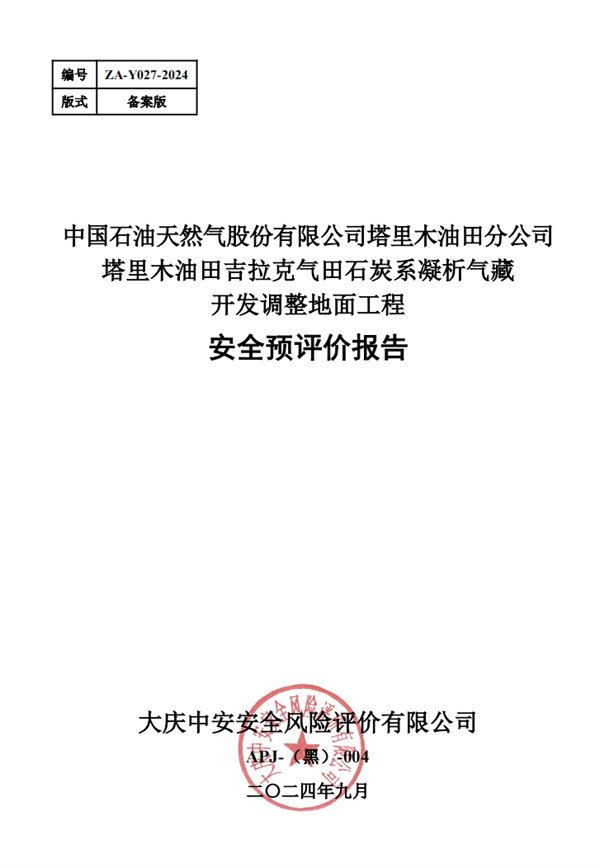 中國石油天然氣股份有限公司塔里木油田分公司塔里木油田吉拉克氣田石炭系凝析氣藏開發(fā)調(diào)整地面工程安全預評價
